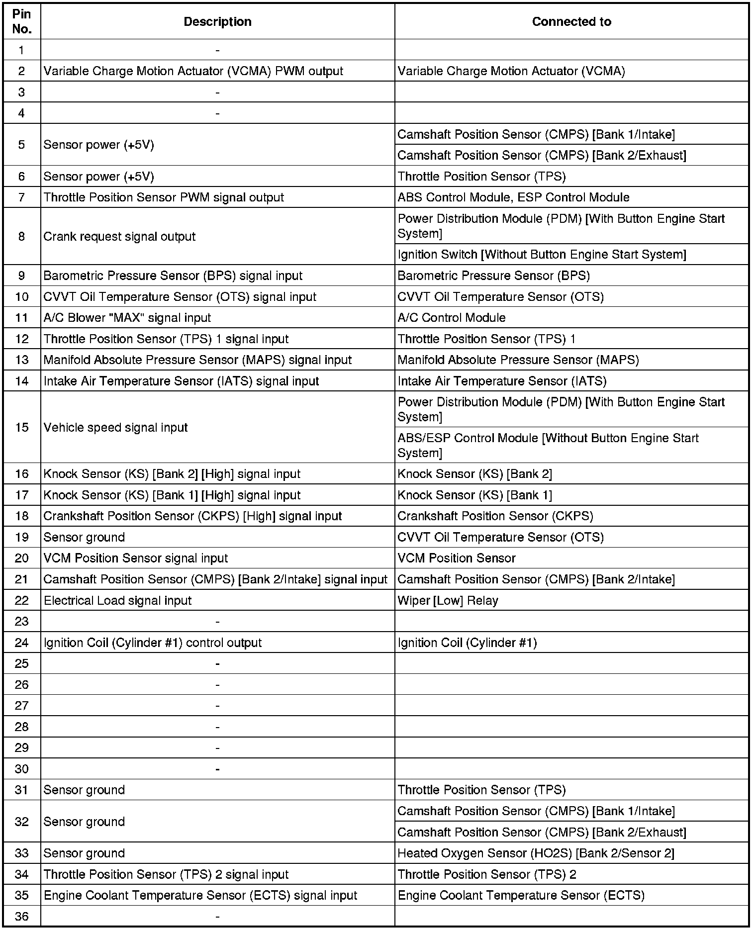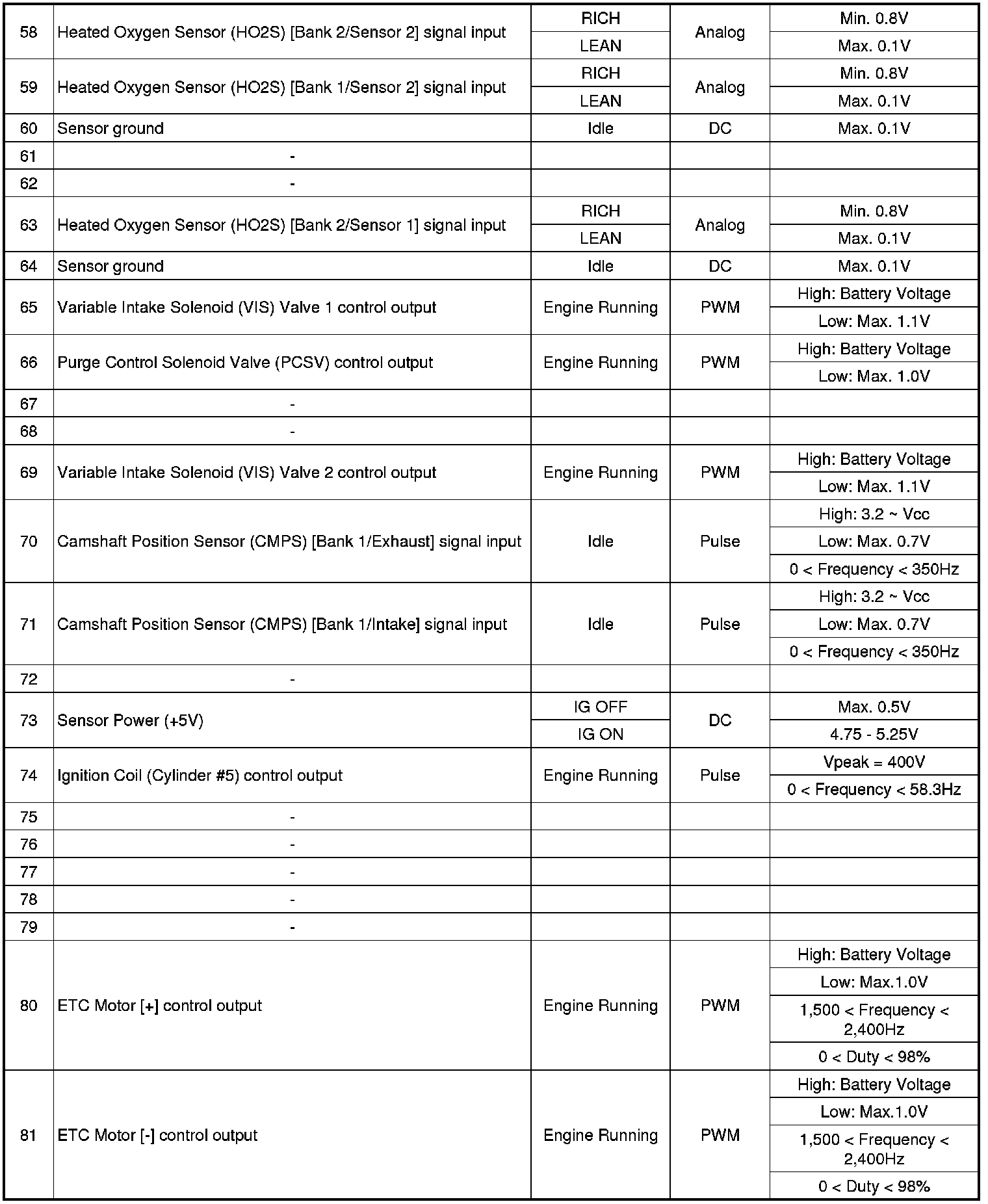 ECM Terminal And Input/Output signal