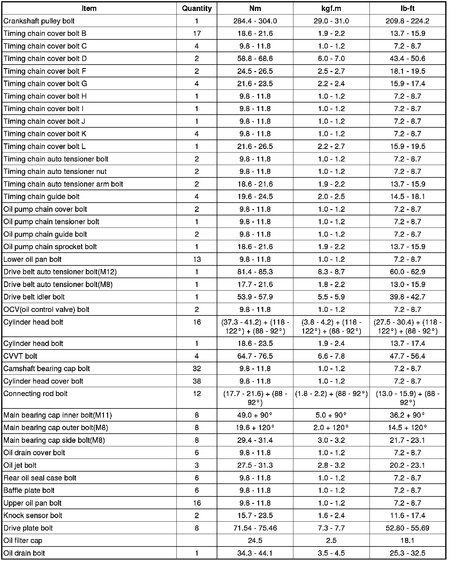Tightening Torques