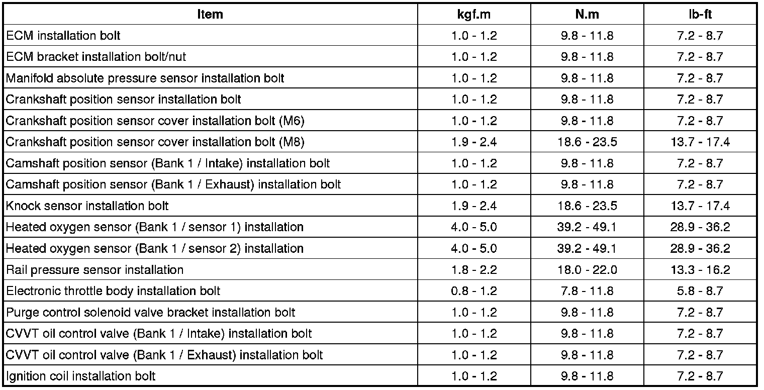 Home >> Hyundai >> 2012 >> Sonata L4-2.4L >> Repair and Diagnosis >> Powertrain Management >> Specifications