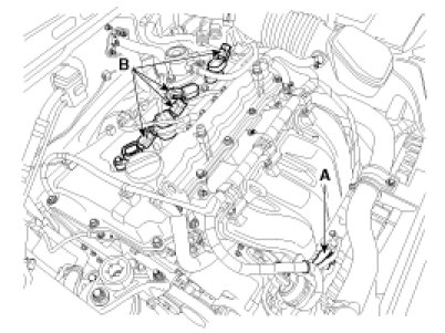 2. Disconnect the injector extension connector (A) and ignition coil connectors (B).