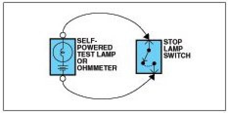 Use a self-powered test lamp or an ohmmeter to check for continuity.