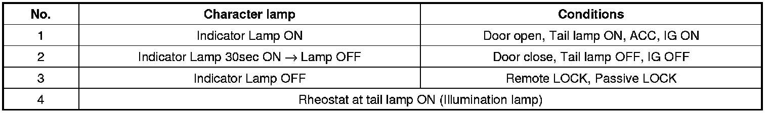 Indicator ON/OFF Condition At Ignition Key Off Condition