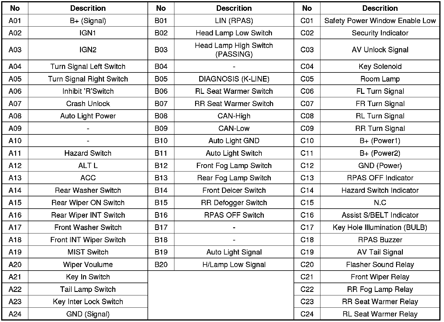 Home >> Hyundai >> 2012 >> Tucson FWD L4-2.4L >> Repair and Diagnosis >> Body and Frame >> Body Control Systems >> Body Control Module >> Testing and Inspection