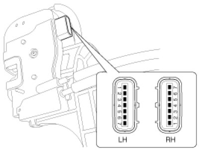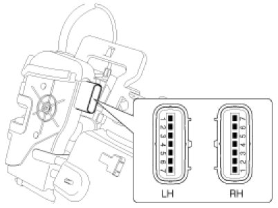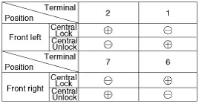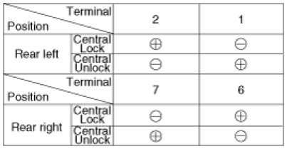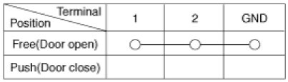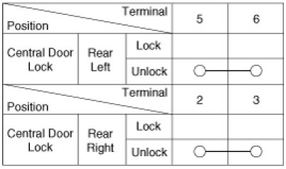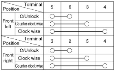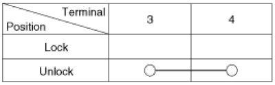 4. Check for continuity between the terminals in each switch position when inserting the key into the door according to the table.