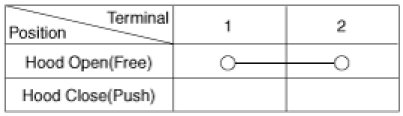 1. Disconnect the connector (A) and bolt from the hood switch.