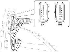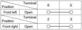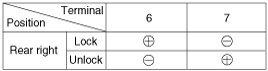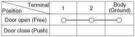 4. Check for continuity between the terminals in each switch position when inserting the key into the door according to the table.