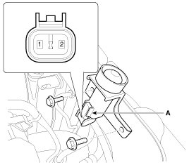 1. Remove the burglar horn (A) after removing 1 bolt and disconnect the 2P connector from the burglar horn.