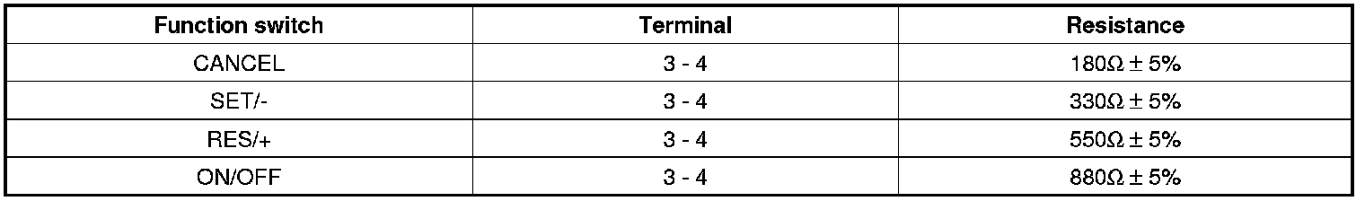 2. Measure resistance between terminals on the control switch when each function switch is ON (switch is depressed).