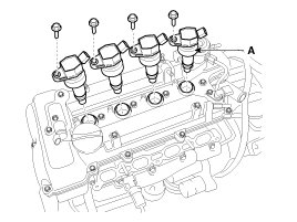 (5) If the cylinder compression in one or more cylinders is low, pour a small amount of engine oil into the cylinder through the spark plug hole and repeat step 1) through 3) for cylinders with low compression.