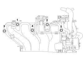 - When installing the intake manifold, tighten the bolts and nuts with pre-torque first, and then tighten the bolts and nuts with specified torque in the sequence shown.
