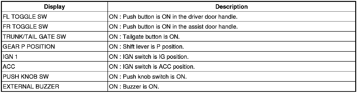 1. SMART KEY unit Input problem : switch diagnosis