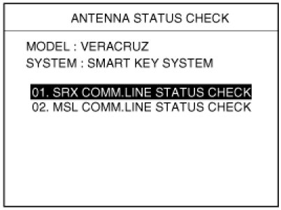 3. After IG ON, select the "SRx COMM. LINE Status Check".