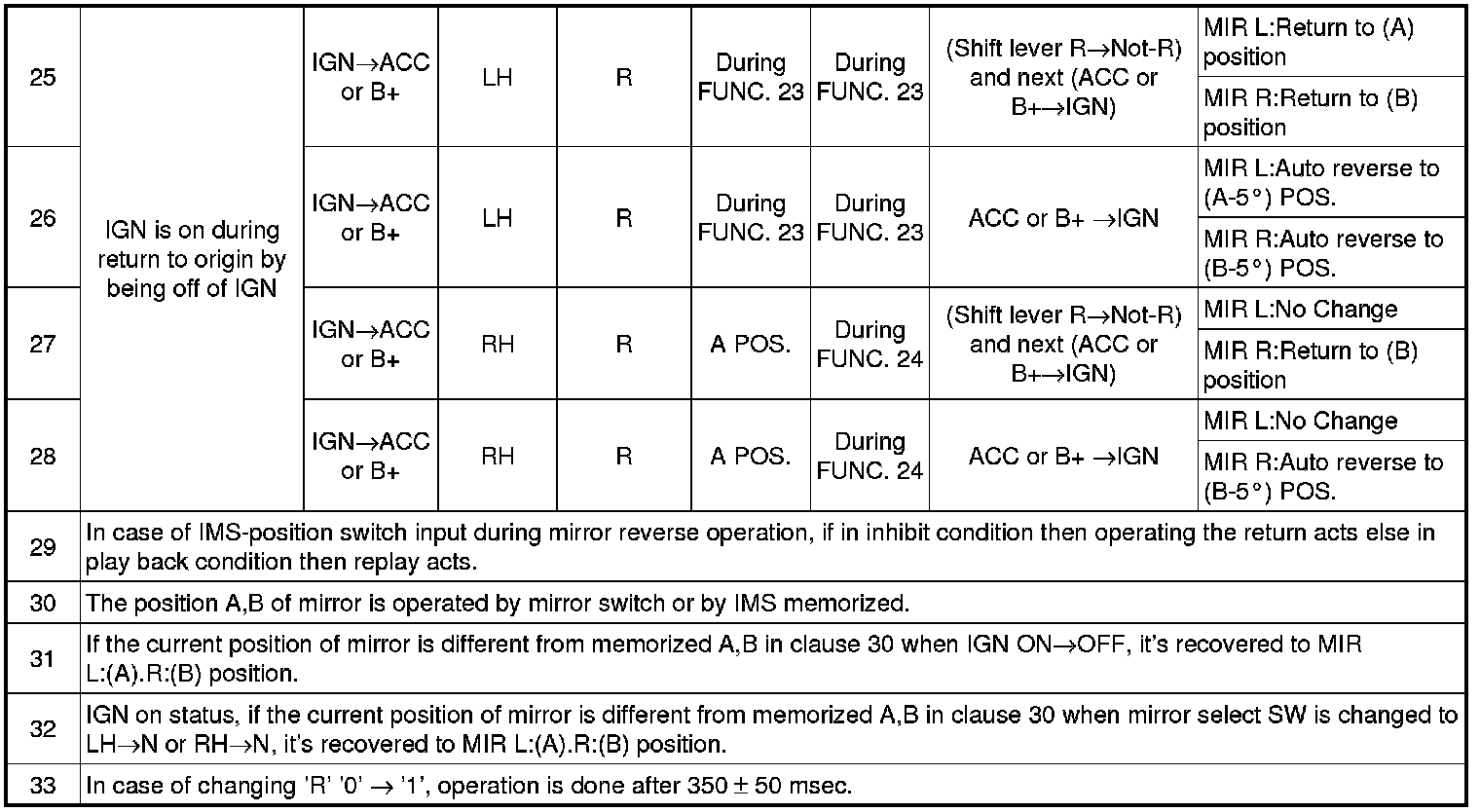 (2) WHEN GETTING RID OF BATTERY, SAVE THE MIRROR position position Memorized BY MEMORY SWITCH TO EEPROM.