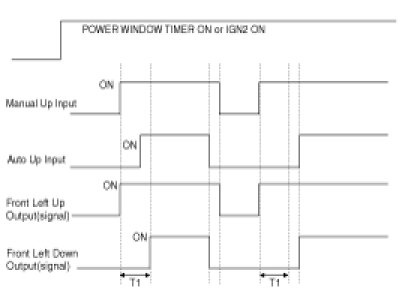 * At POWER WINDOW TIMER ( FROM BCM ) OFF & IGN 2 (DDM) OFF, independently of SWITCH's state UP SIGNAL and DOWN SIGNAL are OFF state preservation.