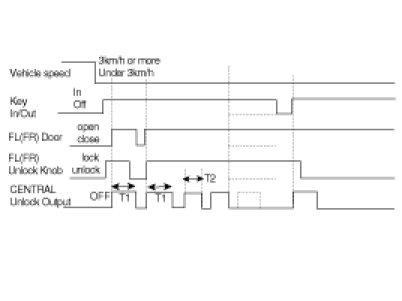 (3) if there is equal output command during output Priority order same Door lock/unlock, input ignore. if there is contrast output command during output Priority order same Door lock/unlock, input ignore and present output immediately discontinue and executes output that is inputted after 100 ms(except CRASH UNLOCK, Without waiting TIME 100 ms immediately action enforcement)