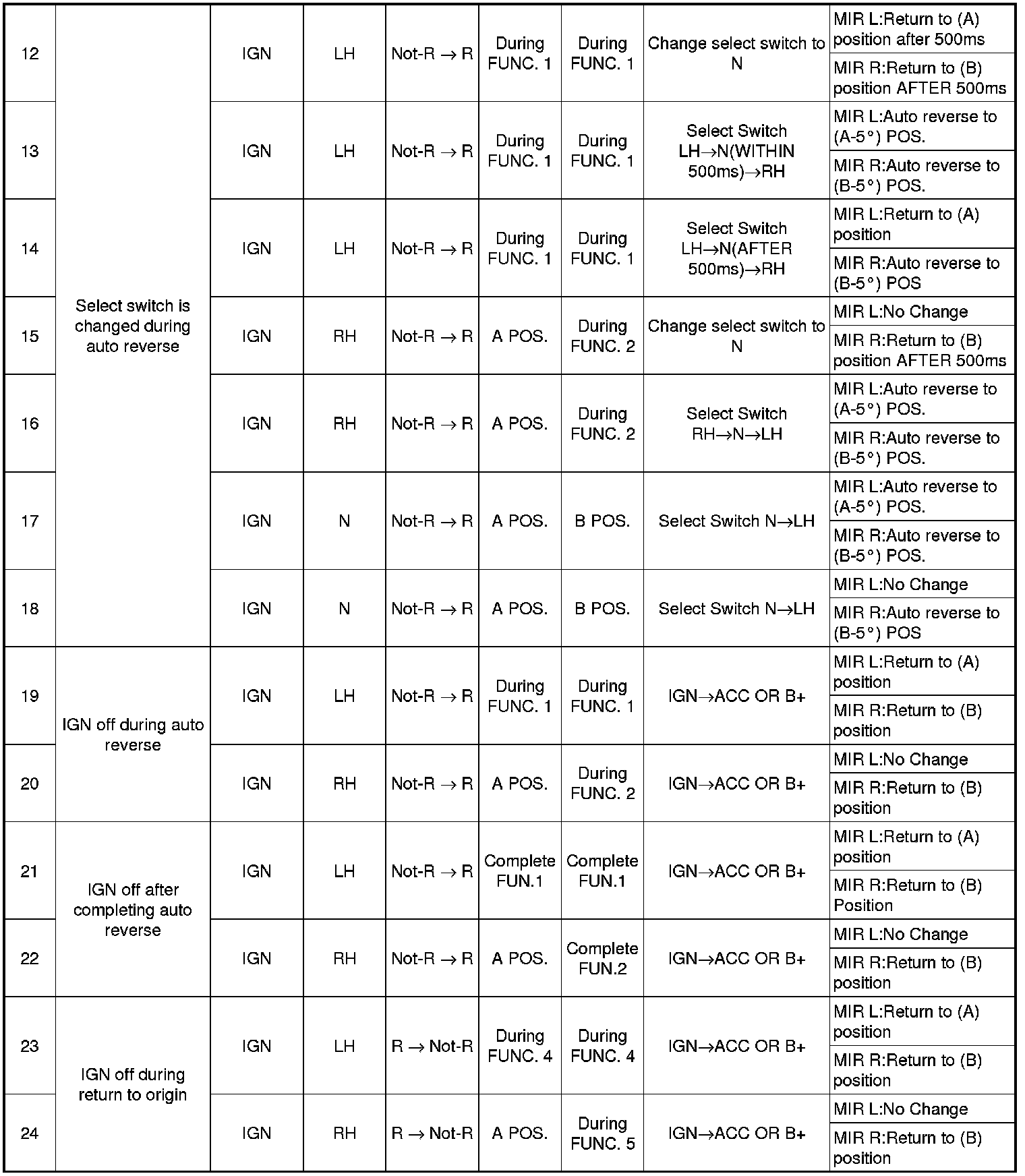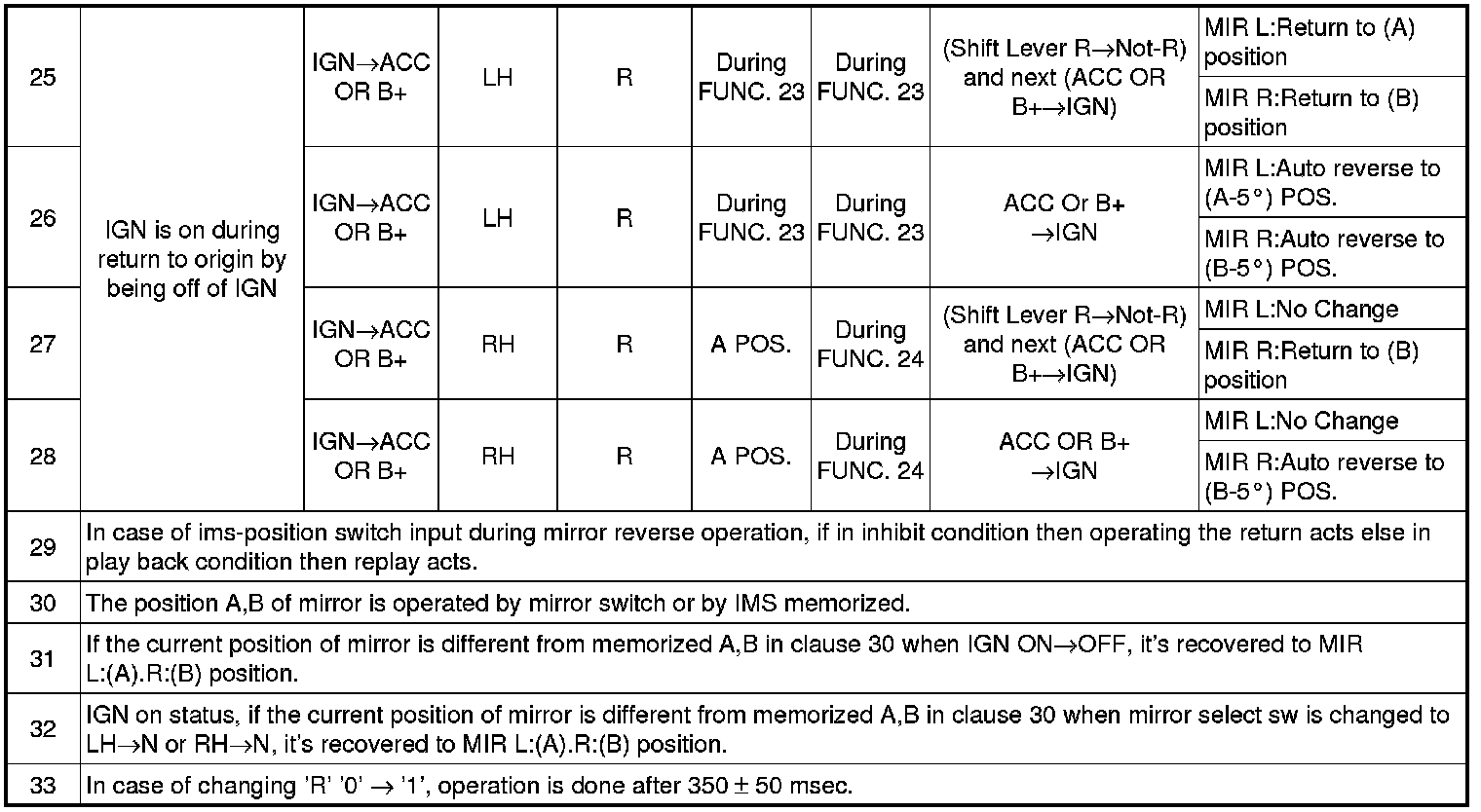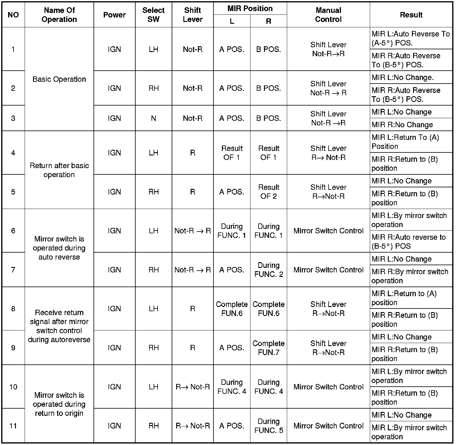 (1) When the each position switch is pressed at the ON state of the IGN2, the mirror shall be positioned according to the memorized value.