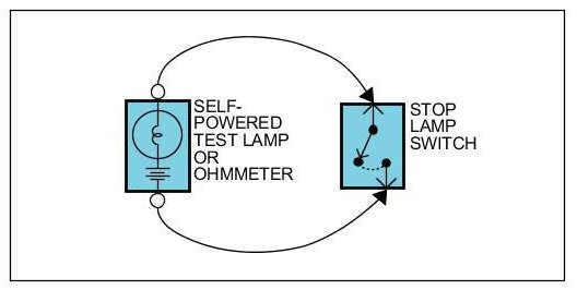 Use a self-powered test lamp or an ohmmeter to check for continuity.