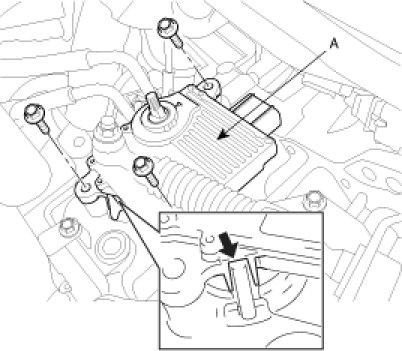 5. Remove the 3 bolts to remove the TCU (A).