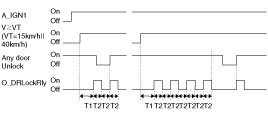 (3) After O_DR Unlock Rly output, if occurring L_DRV DR Unlock SW or L_AST DR Unlock SW, L_RRDR (&Tail Gate)Unlock SW UNLOCK->LOCK, on O_DR Unlock Rly=on for T2