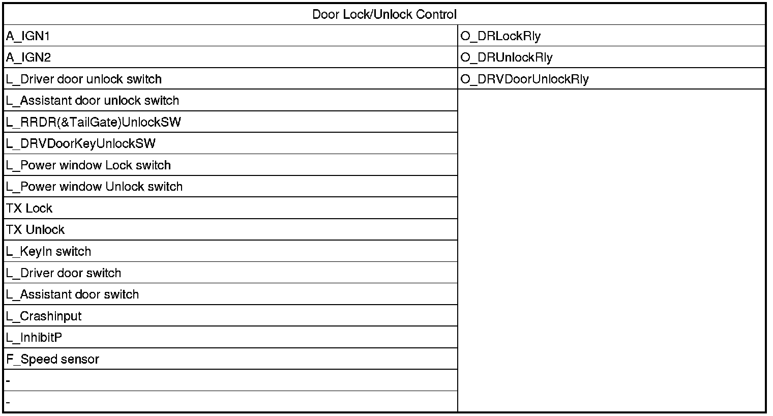 All Door Lock :L_DRV DR Unlock SW=off & L_AST DR Unlock SW=off &
