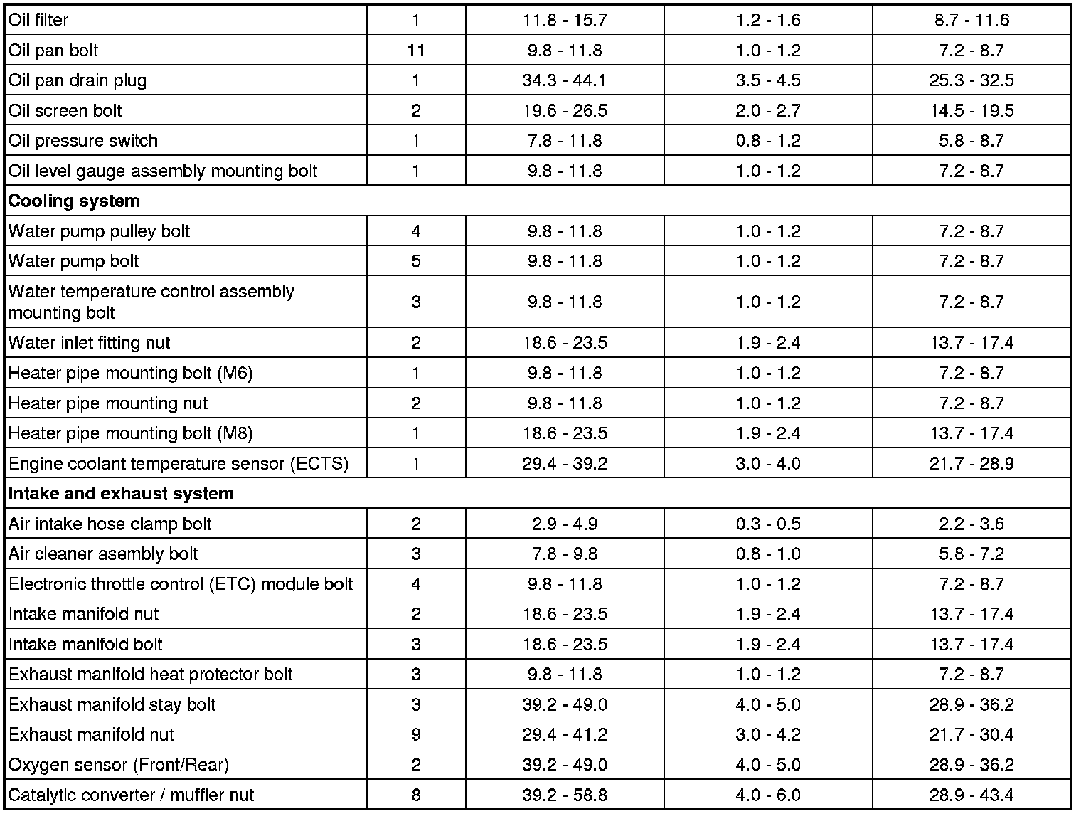 Tightening Torques