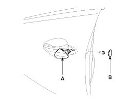3. Loosen the mounting bolt, then remove the door handle cover (B) and door lock (A).