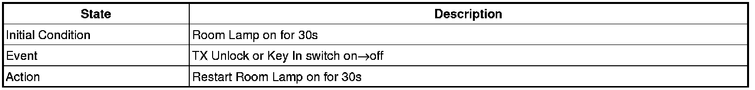 - 4 Door in closed IGN1 off & (Key in -> Key out): 30-second delay will be lights out.