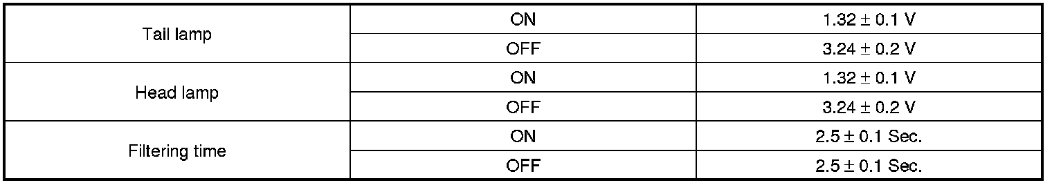 1. During above ON/Off Filtering times, if a detected sensor value doesn't satisfy the ON/Off condition, filtering time counter is cancelled. When Tail lamp Off and Headlamp Off conditions are satisfied at the same time, Head Lamp Low and Tail Lamp are turned off simultaneous.
