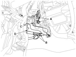 4. Remove the oil pump unit (C) and the DC/DC converter (D).