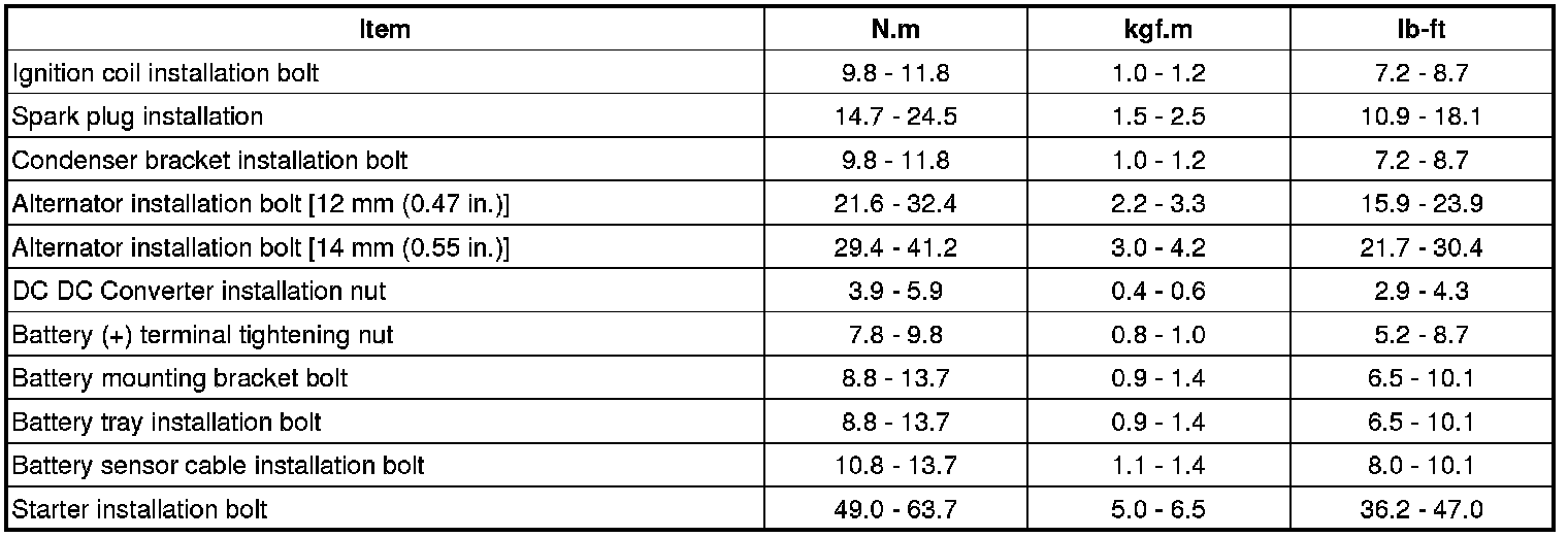 Tightening Torques