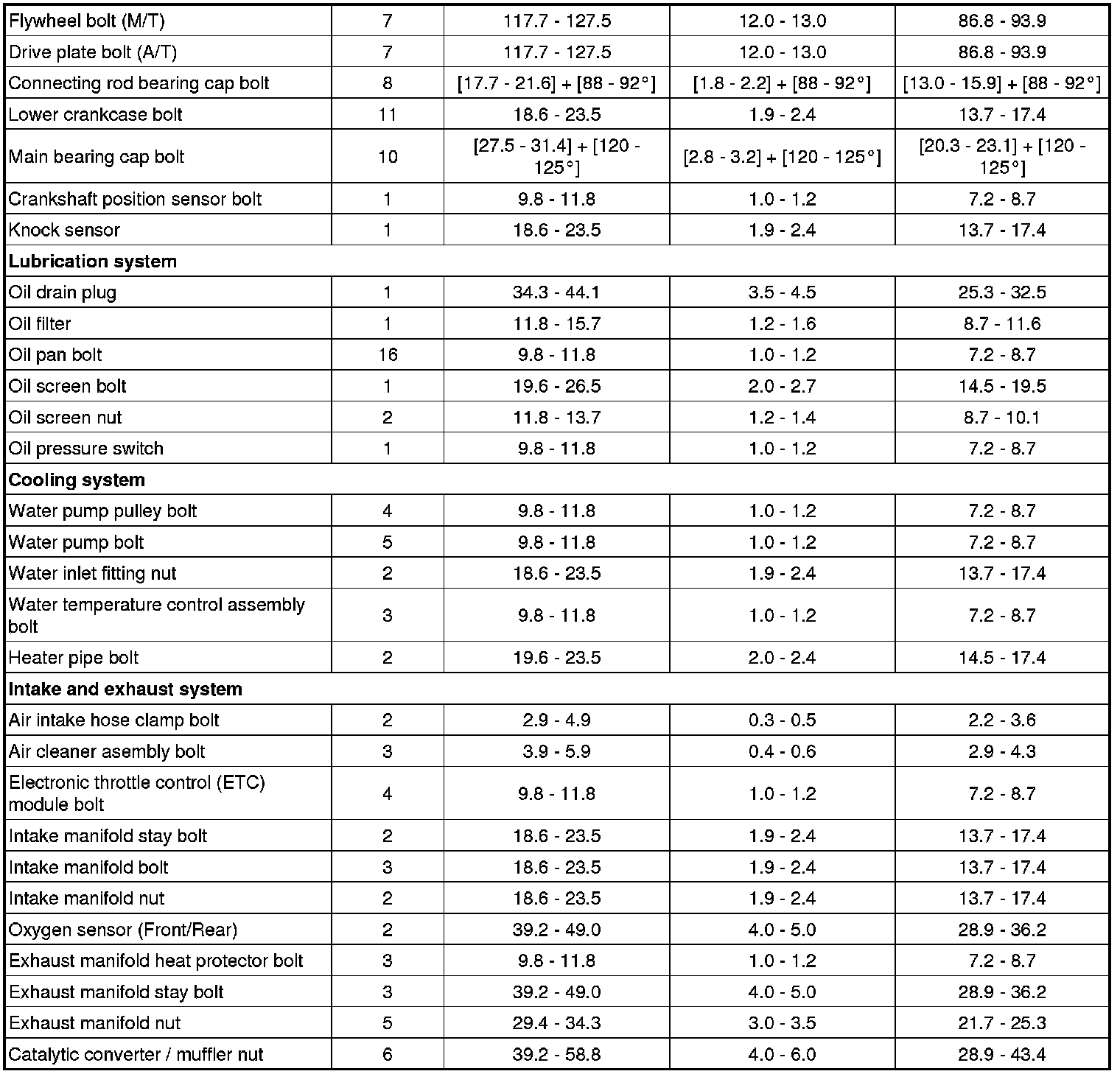 Tightening Torques