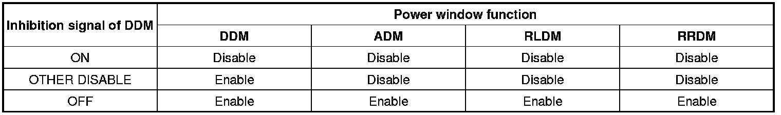 - Power Window Inhibition : ADM, RLDM and RRDM are inhibited by Power window Lock Switch