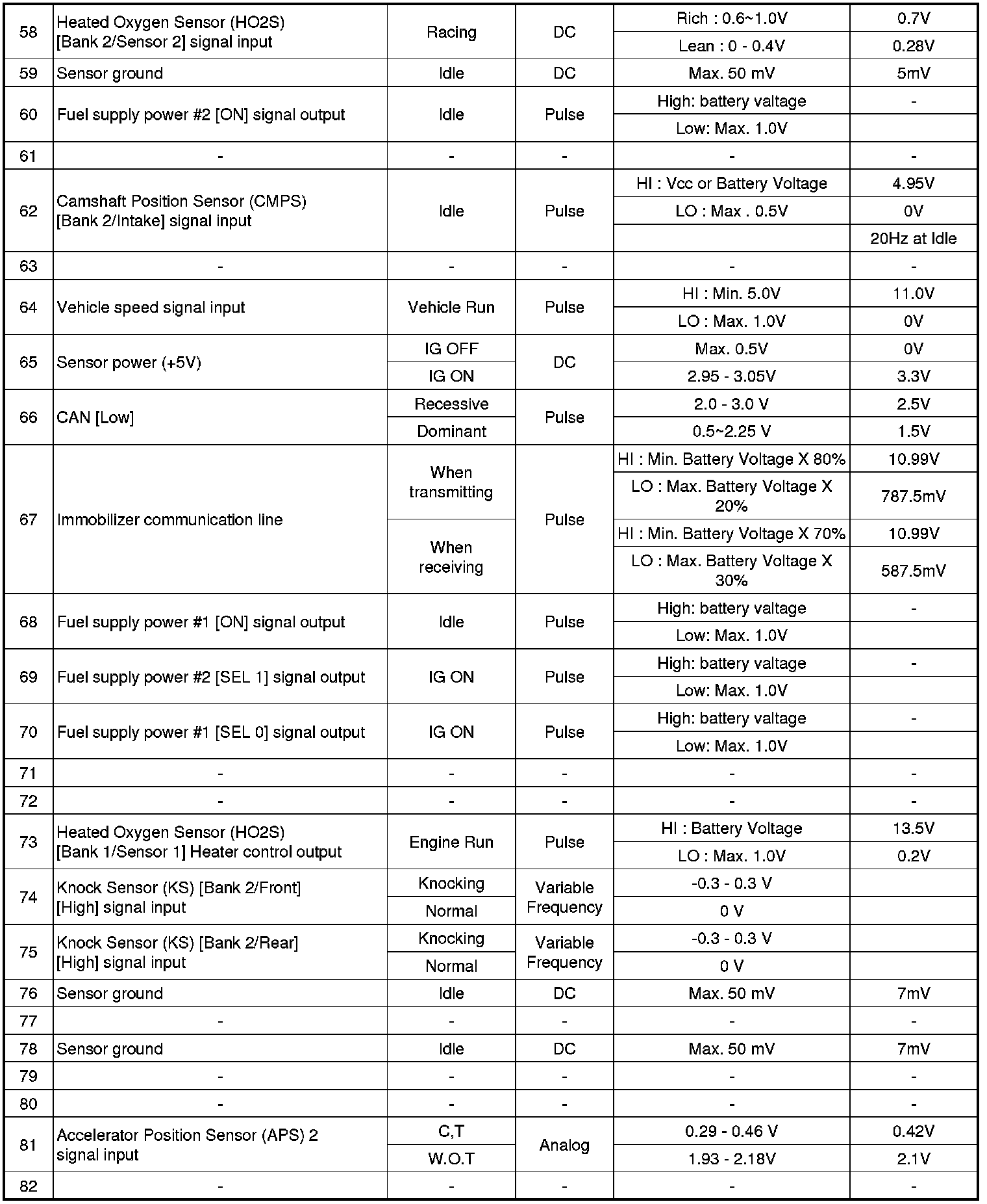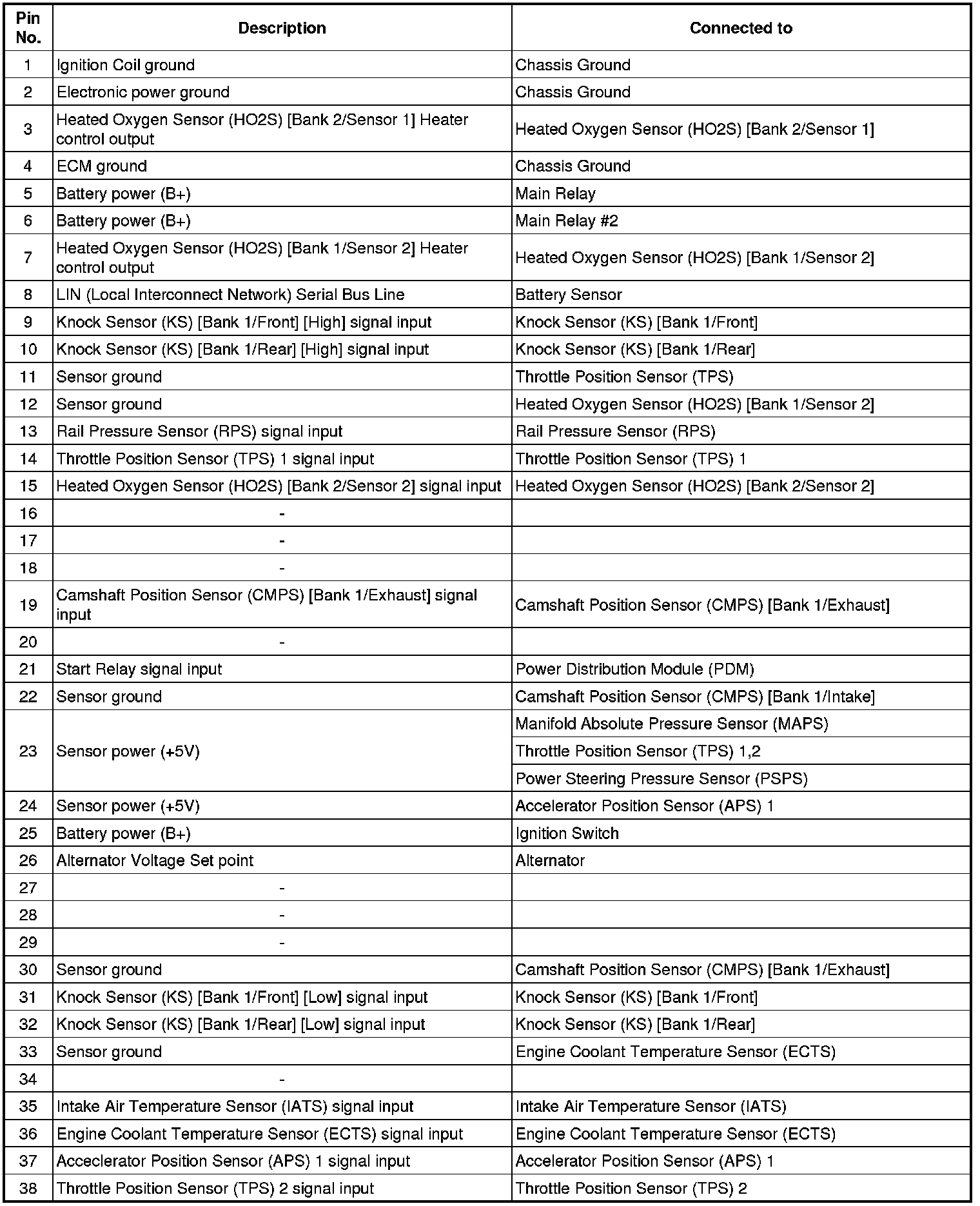 ECM Terminal Input/ Output signal