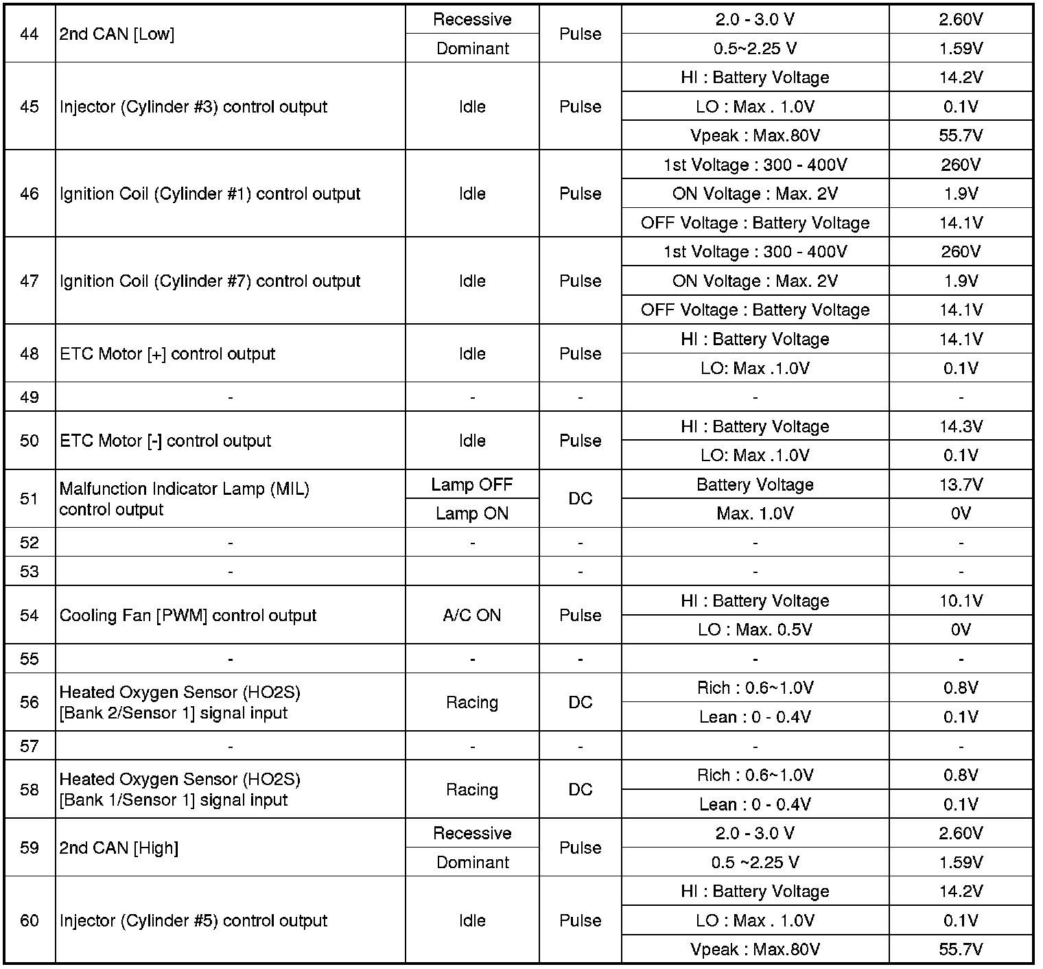 ECM Terminal And Input / Output signal