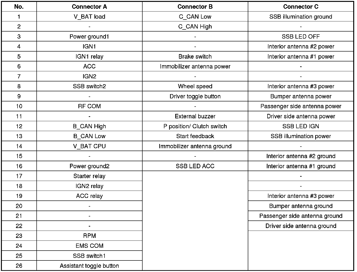 Connector Pin Information