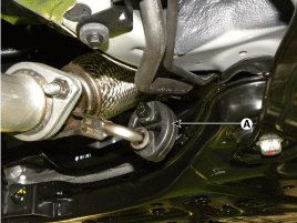 9. Disconnect the muffler rubber hanger (A).