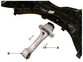 14. Loosen the nut (A-2ea) and then remove the sub frame damper (B).