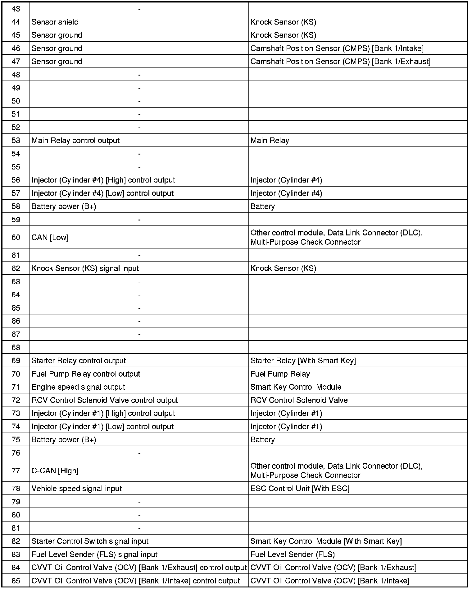 ECM Terminal Input/ Output signal