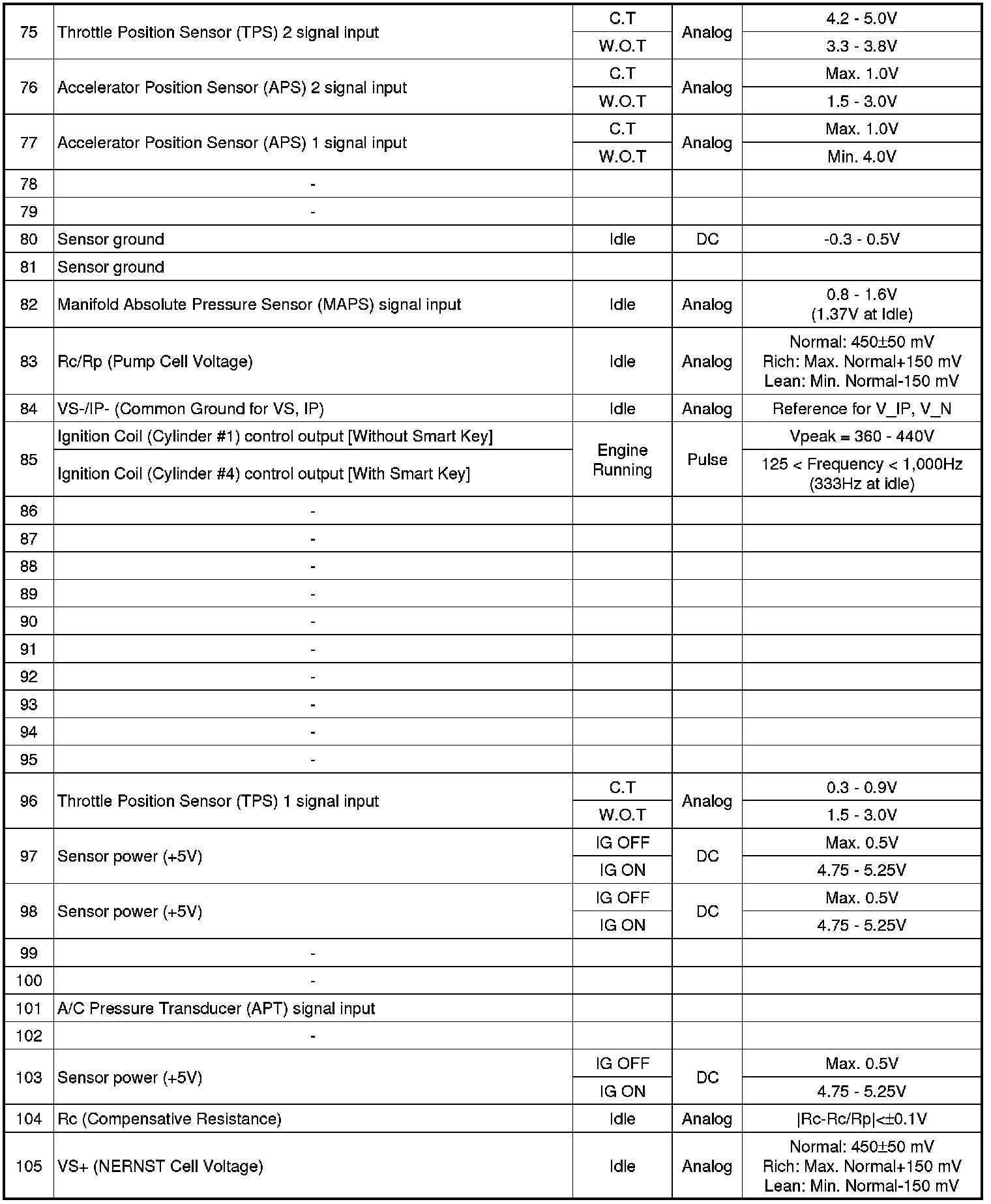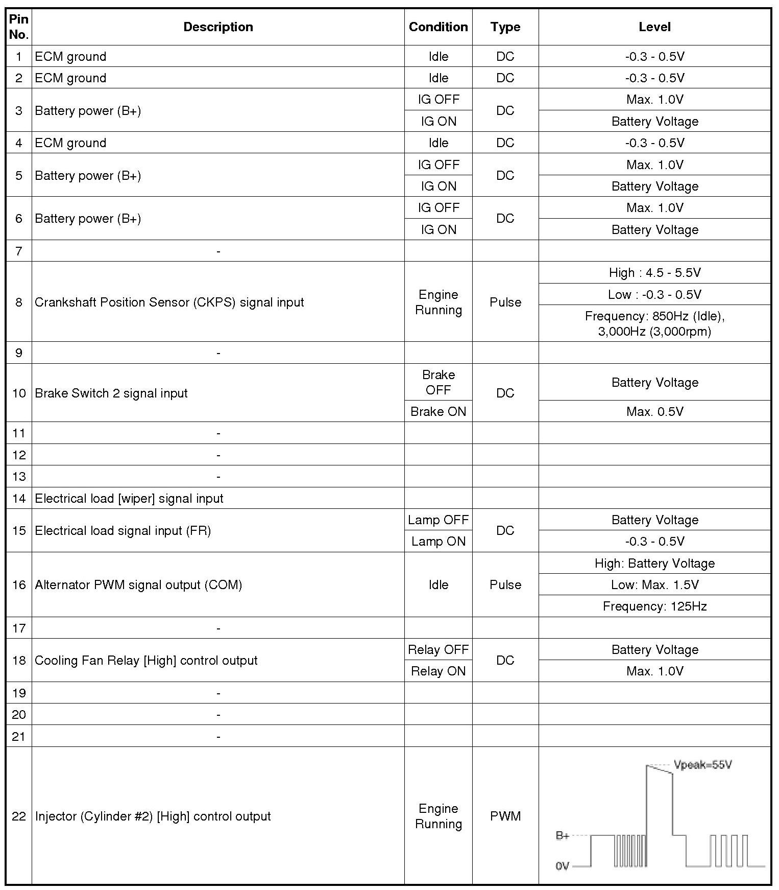 ECM Terminal And Input/Output signal