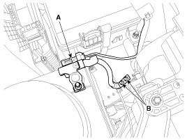 3. Remove the battery negative (-) cable after removing the bolts (B).
