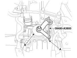 Use a SST (09480-A3800) or 0.1969in.( 5mm) bolt, fix the inhibitor manual control lever in the N jig hole (A) when you assemble the inhibitor (B).