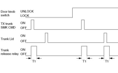 (2) If ALL DOOR UNLOCK and TRUNK LID is OFF -> ON, Trunk Release Relay is ON during T1.(SMK option)