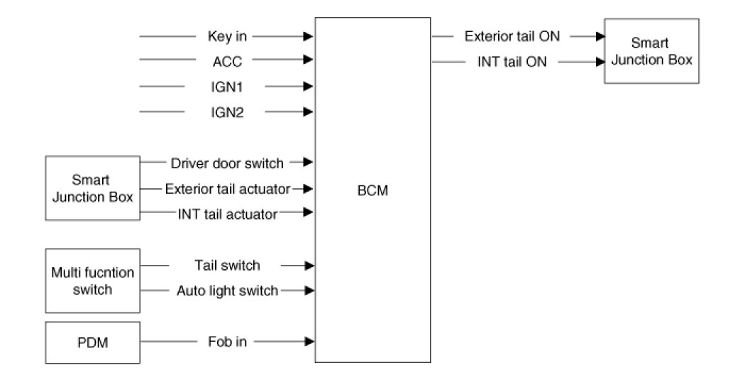 (4) While escort function is activated, Tail lamp is keeping the turn on state and does not go to Auto cut and after finish escort state and user removes key, it can go Auto cut mode.