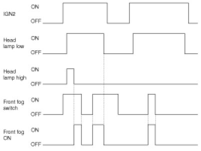 (1) In case of (IGN2=ON) & (Head Lamp Low=ON) & (Head Lamp High=Off), if Front fog lamp switch input is detected (Front Fog SW=On), Front fog lamp output (Front Fog ON=On) is turned ON.