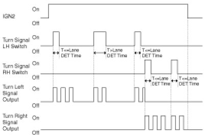- During the Lane Change mode operation, if the user moves the turn switch in the other direction, then Lane change mode is finished and the other direction's flashing (Normal or Lane change flashing) will start depending on the switch detection time.