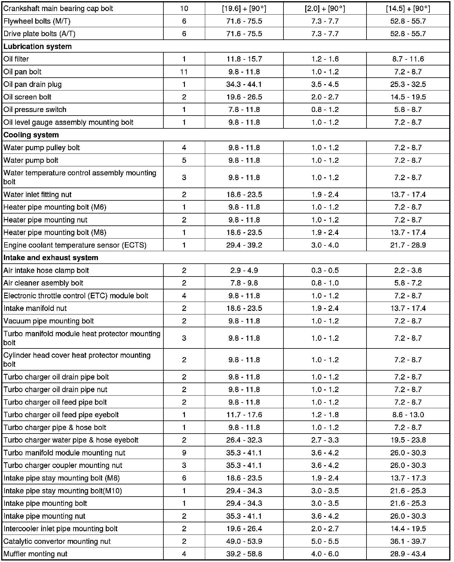 Tightening Torques