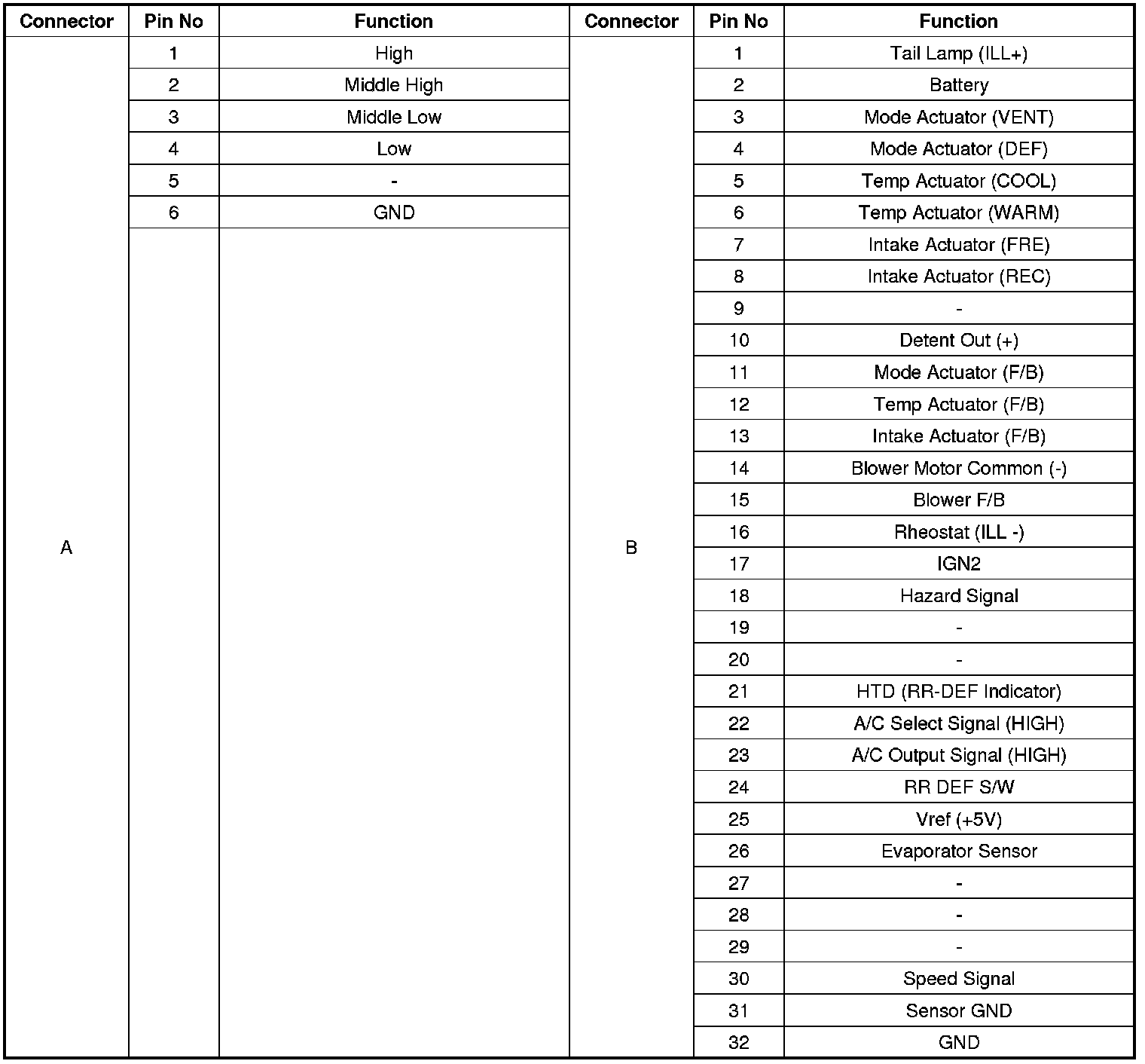 Connector pin function