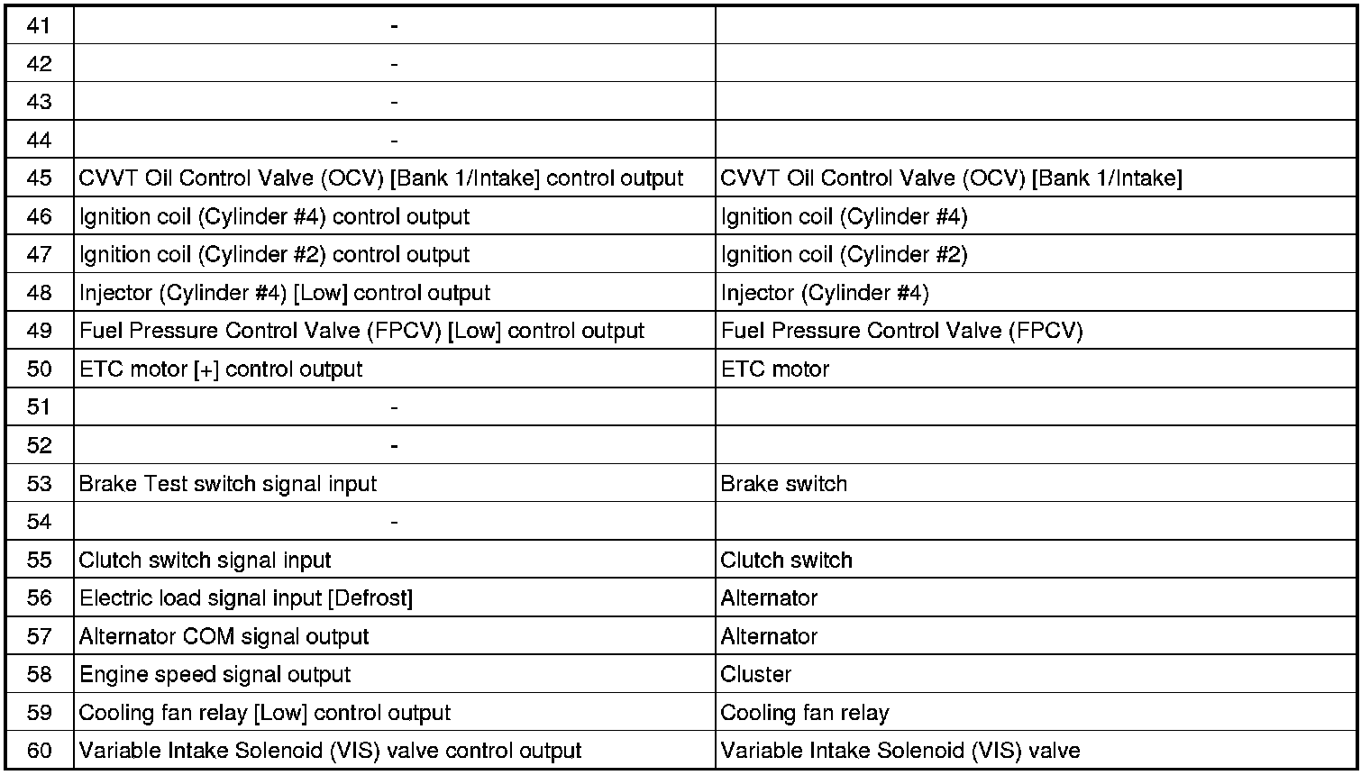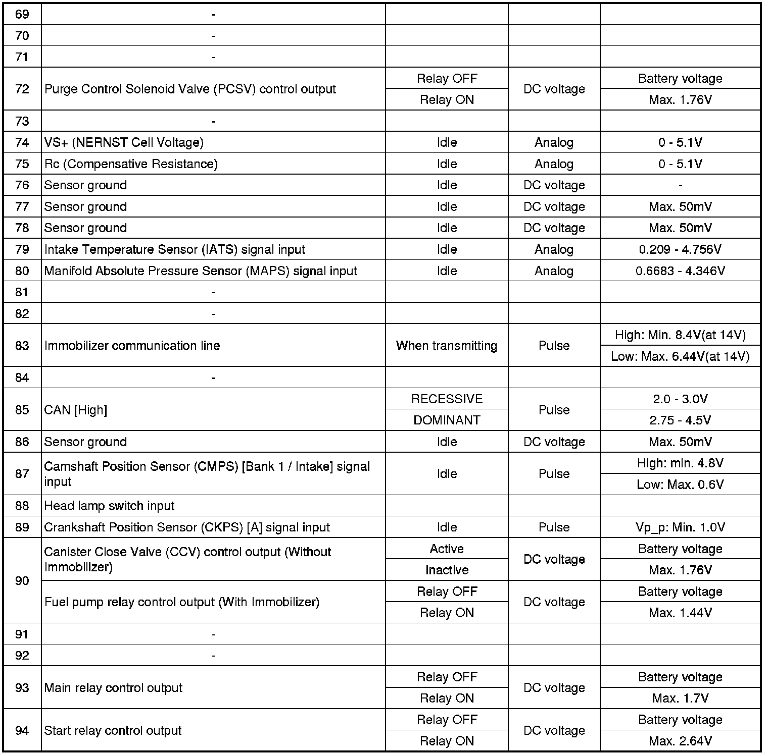 ECM Terminal Input/Output Signal