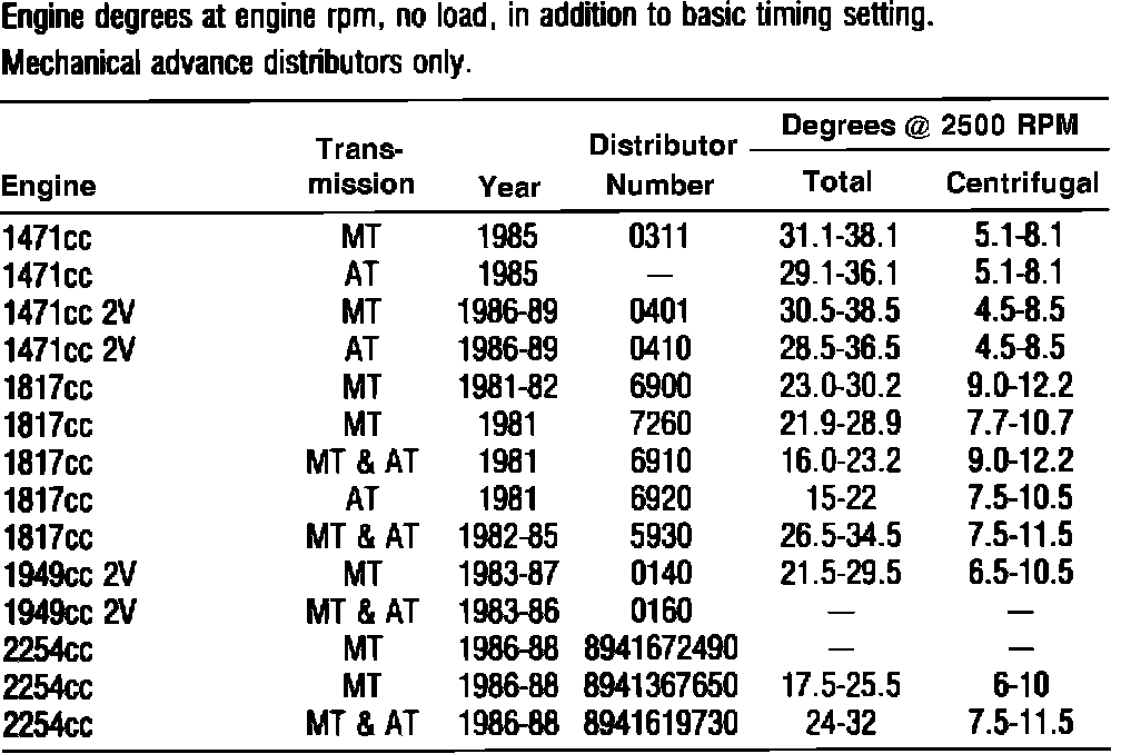 Fig. 9 Distributor Timing Advance Specifications: