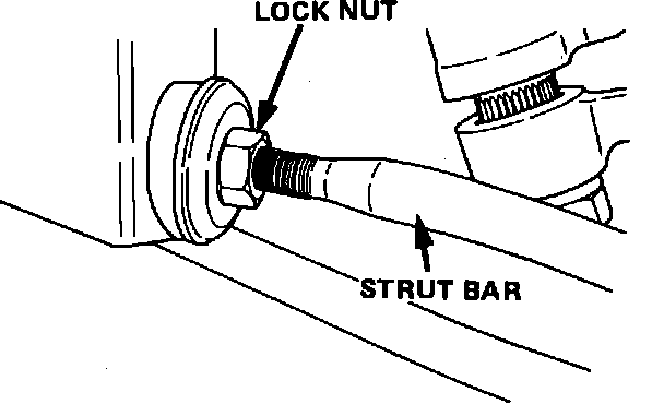 Caster angle is adjusted by varying length of the strut by means of the strut bar locknut, Fig. 1.